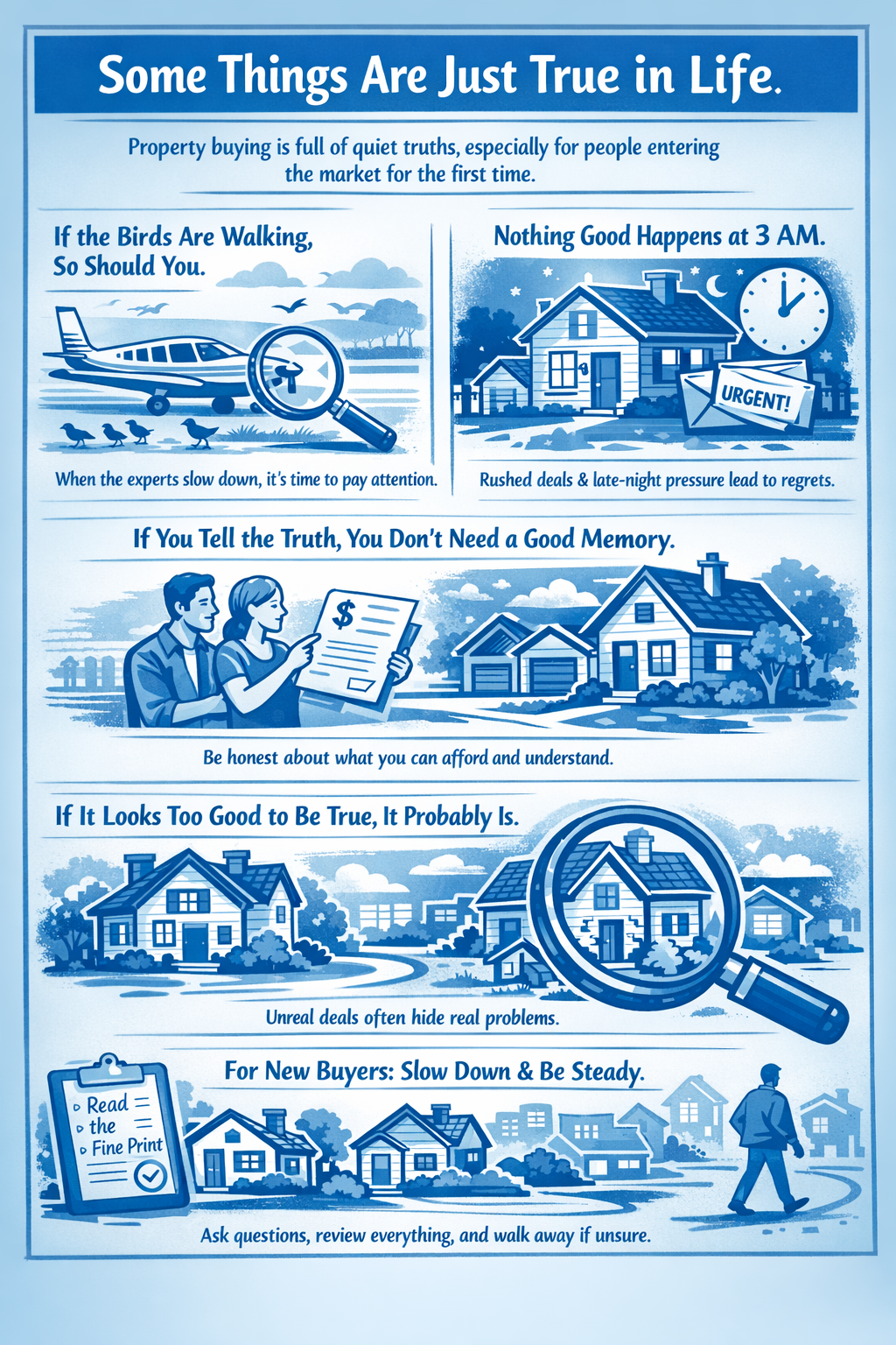 /They are not clever. They are not new. They are not taught in textbooks. They are learned the slow way, usually by watching what goes wrong for other people. Property buying is full of these quiet truths, especially for people entering the market for the first time.